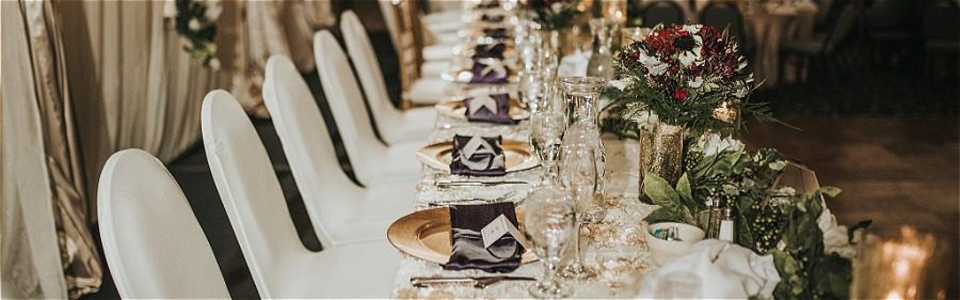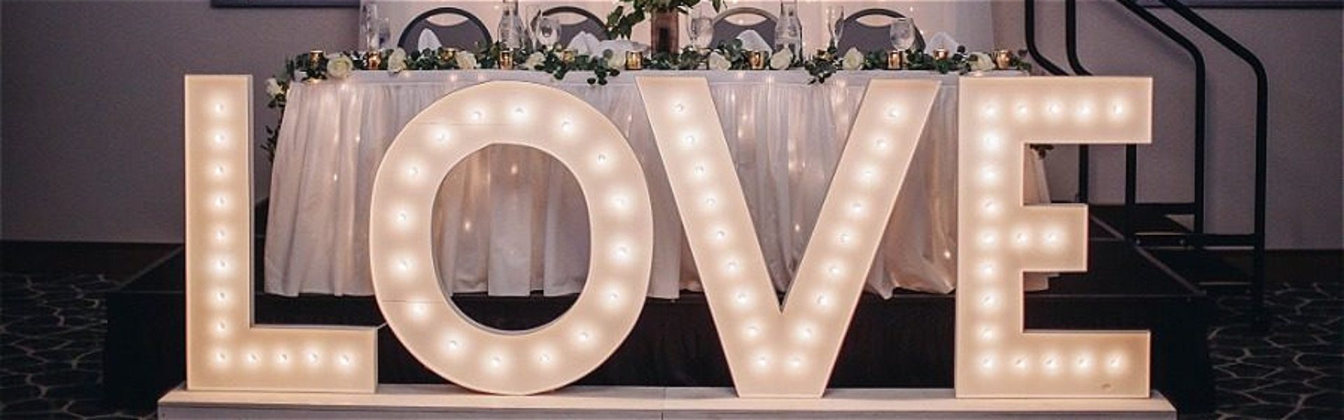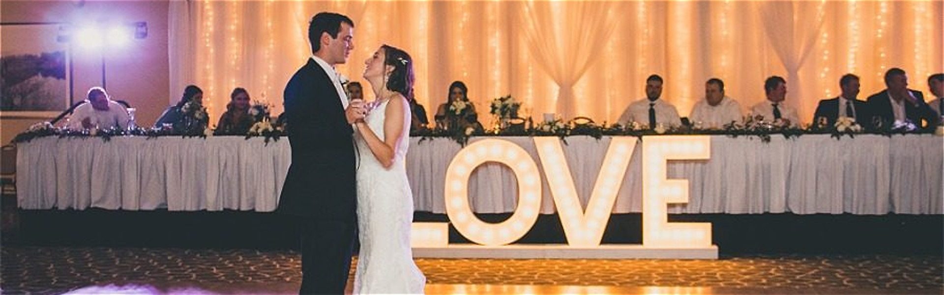 - Decorations available such as—Backdrop behind head table, Marquee LOVE sign or round mirror tiles for tables.